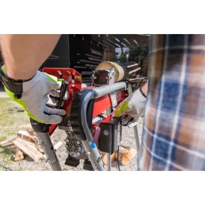 Trotz der Zwei-Hand-Sicherheitsbedienung und der damit verbundenen Gefahrenverringerung empfehlen wir Ihnen, beim Betrieb des Spalters Sicherheitsschuhe, Schutzbrille und Handschuhe zu tragen. Achten Sie beim Betrieb darauf, den Holzspalter auf einen festen, geraden Untergrund zu stellen. Ideal und ergonomisch zu betreiben, beispielsweise auf einer Werkbank.
